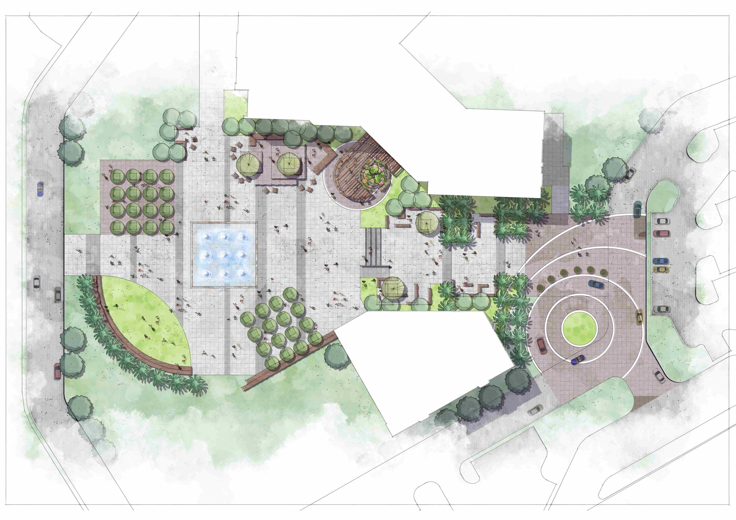 - Contextual Planting Palette: Selection of native and climate-adaptive species for outdoor plazas, courtyards, and circulation corridors—minimizing irrigation needs and maximizing shade, biodiversity, and seasonal interest.