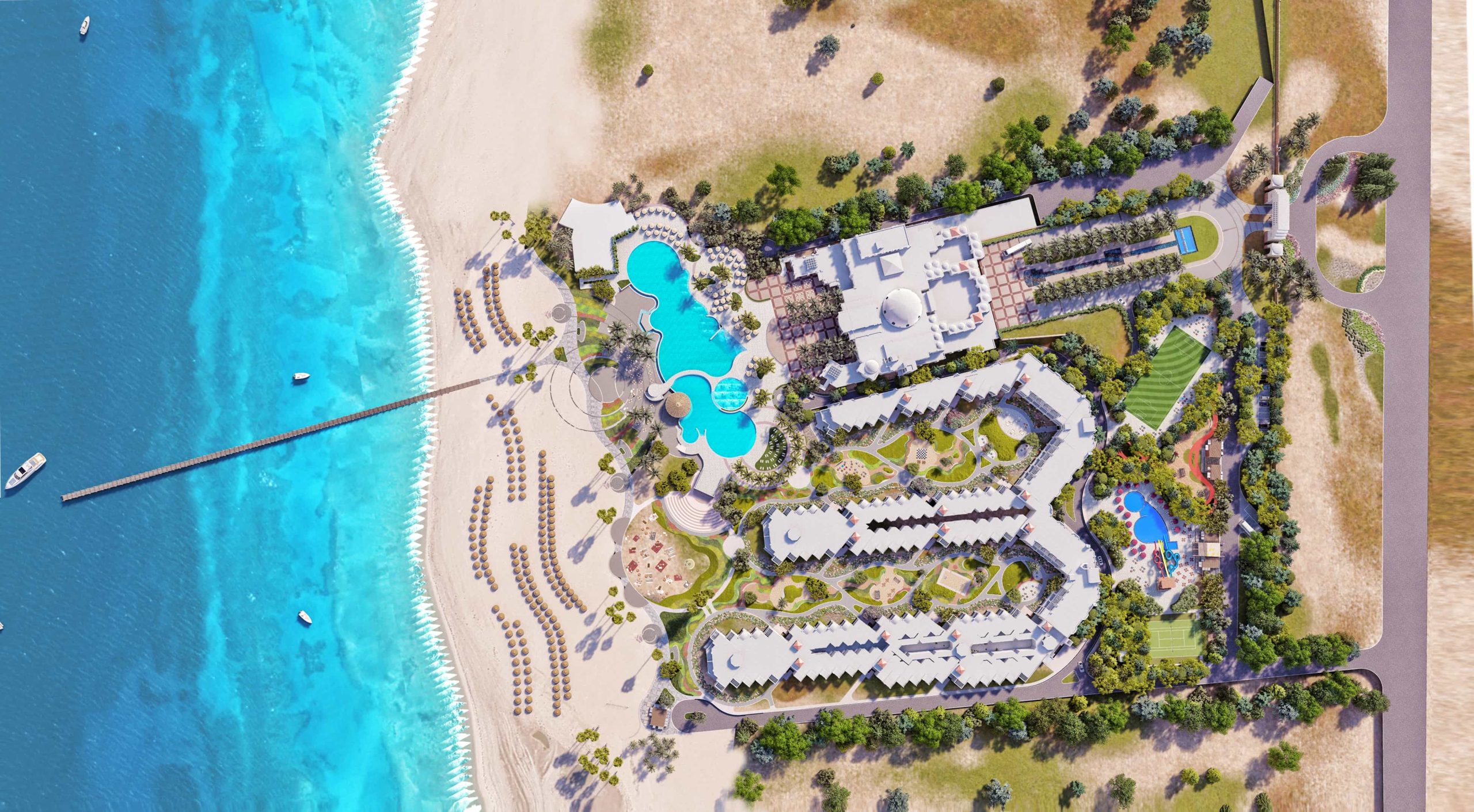 Situated along one of the world’s most breathtaking beaches, Lazuli Hotel Marsa Alam offers an unparalleled experience at a prime diving and snorkeling destination on the Red Sea coast. As the lead consultant for this expansive 1500-guest resort, Schaduf took charge of the overall master planning, landscape design, and project management across the impressive 155,000 m² site.