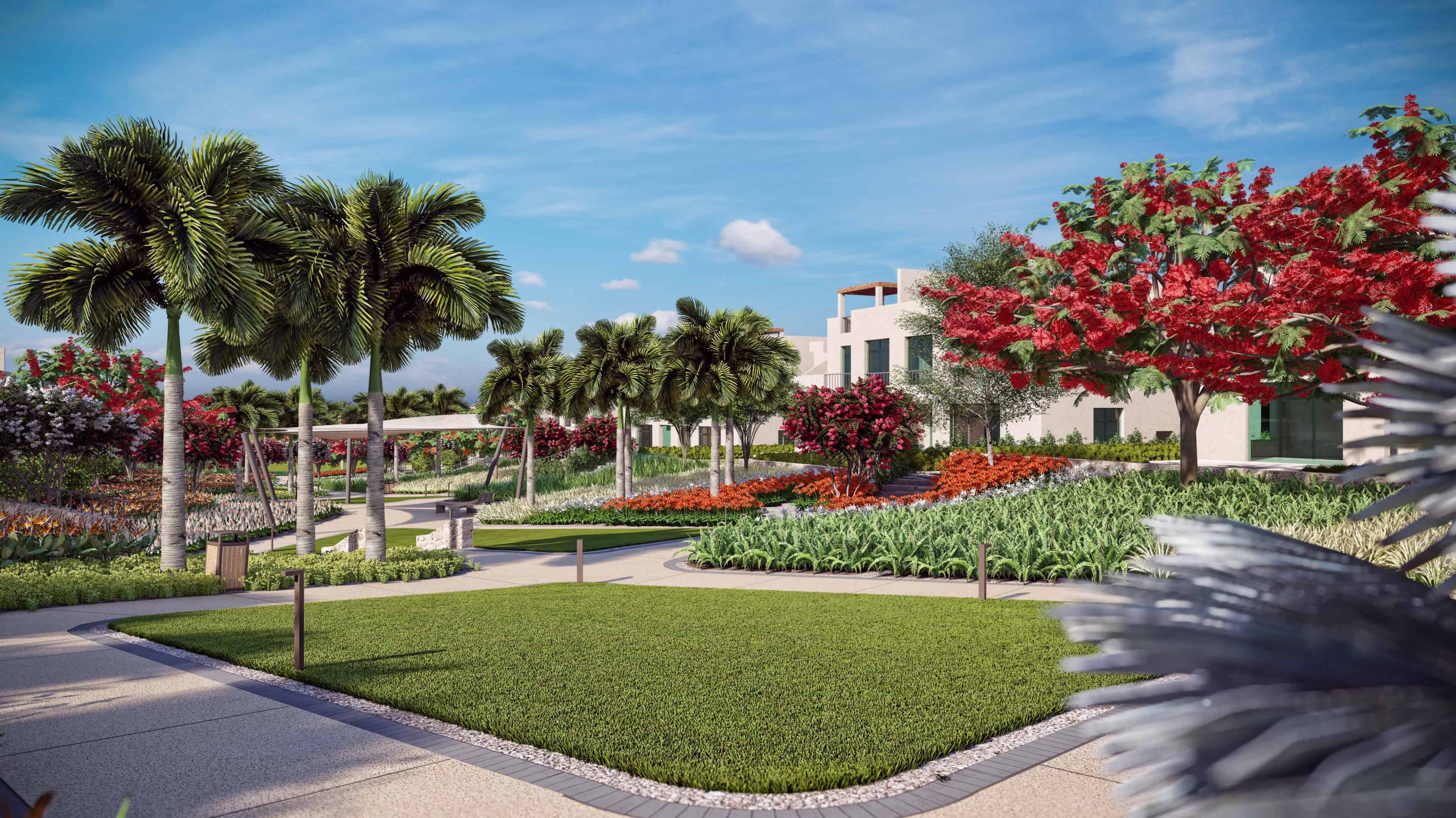 The layout of the green spaces was meticulously planned to create a seamless flow between different areas of the development. Walking and cycling paths were strategically placed to encourage pedestrian movement and reduce reliance on vehicles. These paths are lined with trees and shrubs, providing shade and enhancing the overall aesthetic appeal.