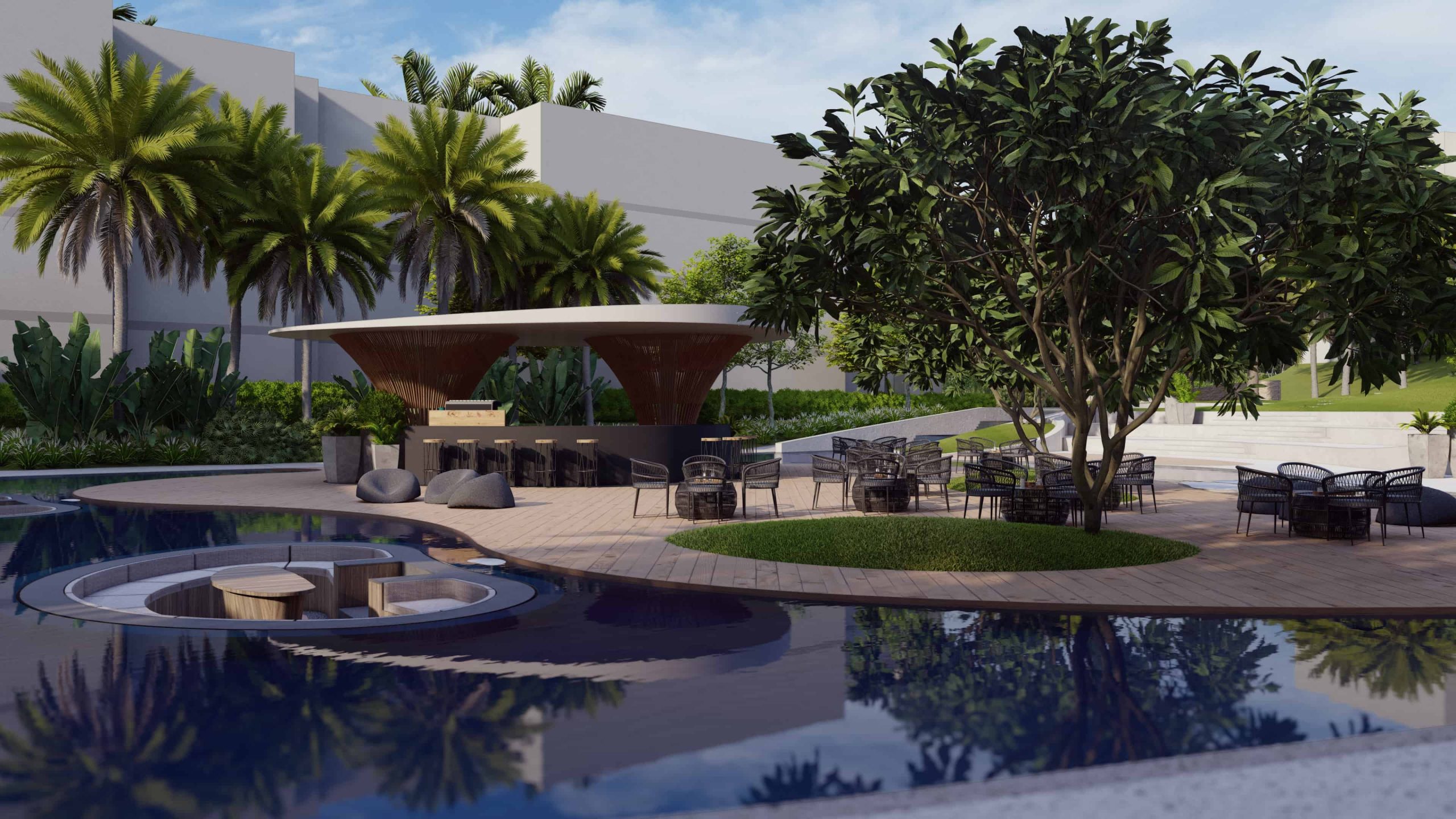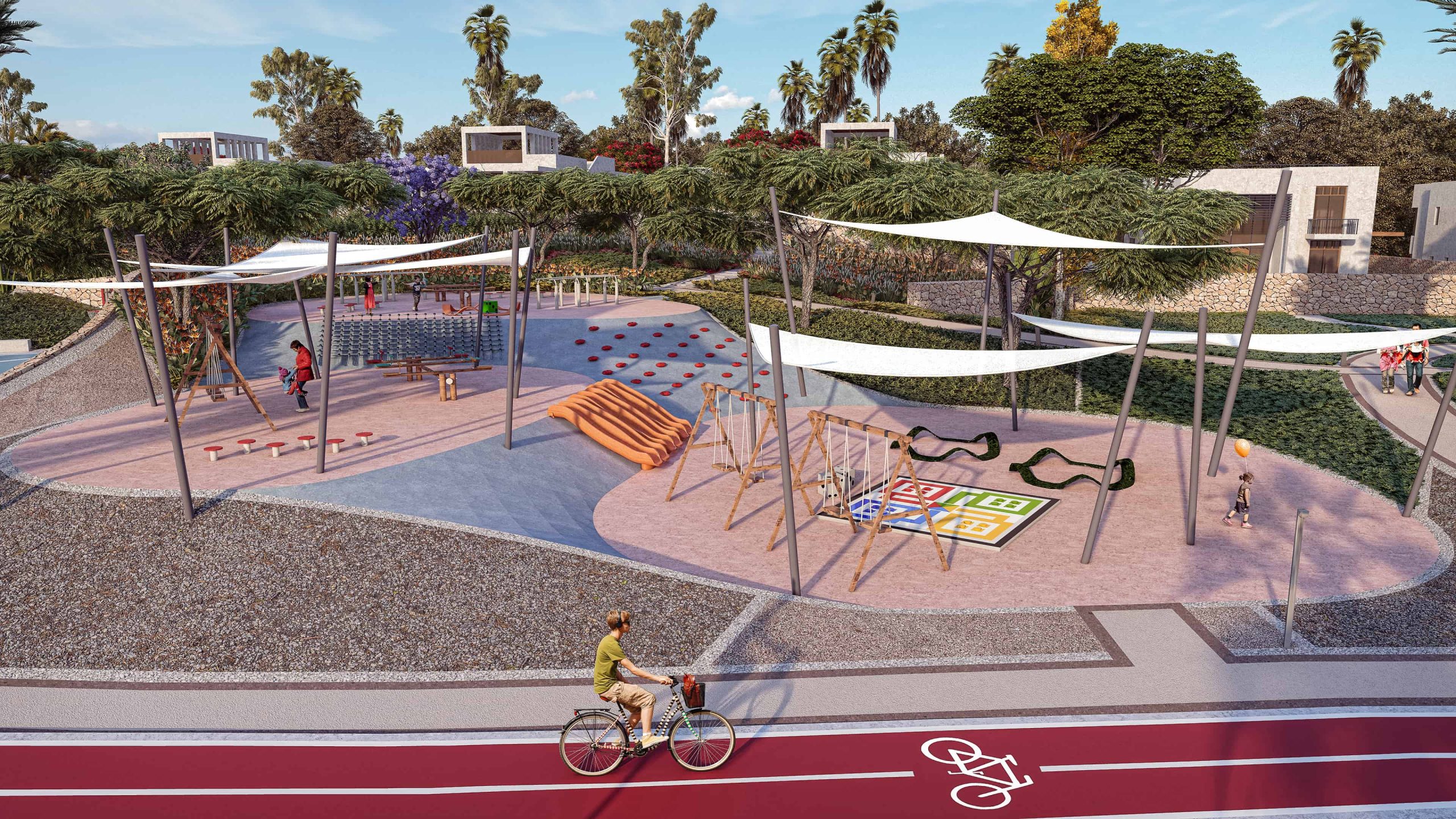We also focused on creating multi-functional spaces that serve both recreational and ecological purposes. For example, communal gardens and parks are designed not only for leisure and social activities but also to support local flora and fauna. These spaces are equipped with seating areas, playgrounds, and fitness zones, making them versatile and engaging for residents of all ages.