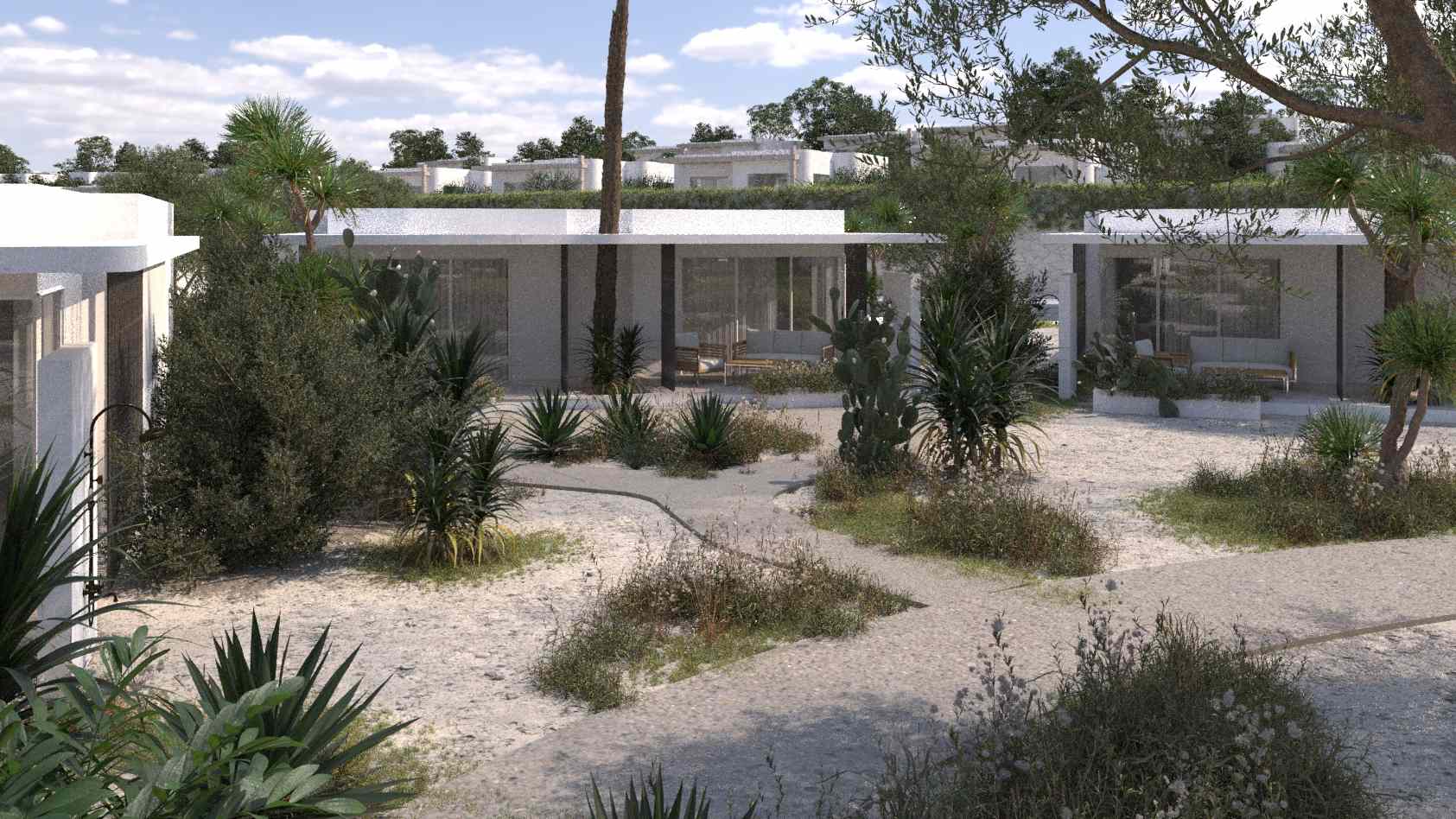 The landscape seamlessly extends into private gardens and outdoor living spaces, envisioned as natural extensions of interiors. Terraces and patios offer privacy while maintaining a connection with the surrounding environment. Locally sourced stone and textured concrete paving complement the architectural style and enrich the tactile experience of outdoor spaces.